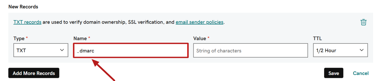 How to add a Dmarc record on GoDaddy
