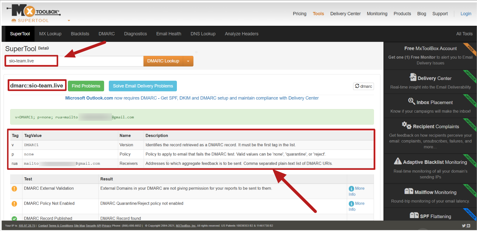 4. You can verify your DMARC record is set up correctly by searching for your domain at https://mxtoolbox.com/dmarc.aspx