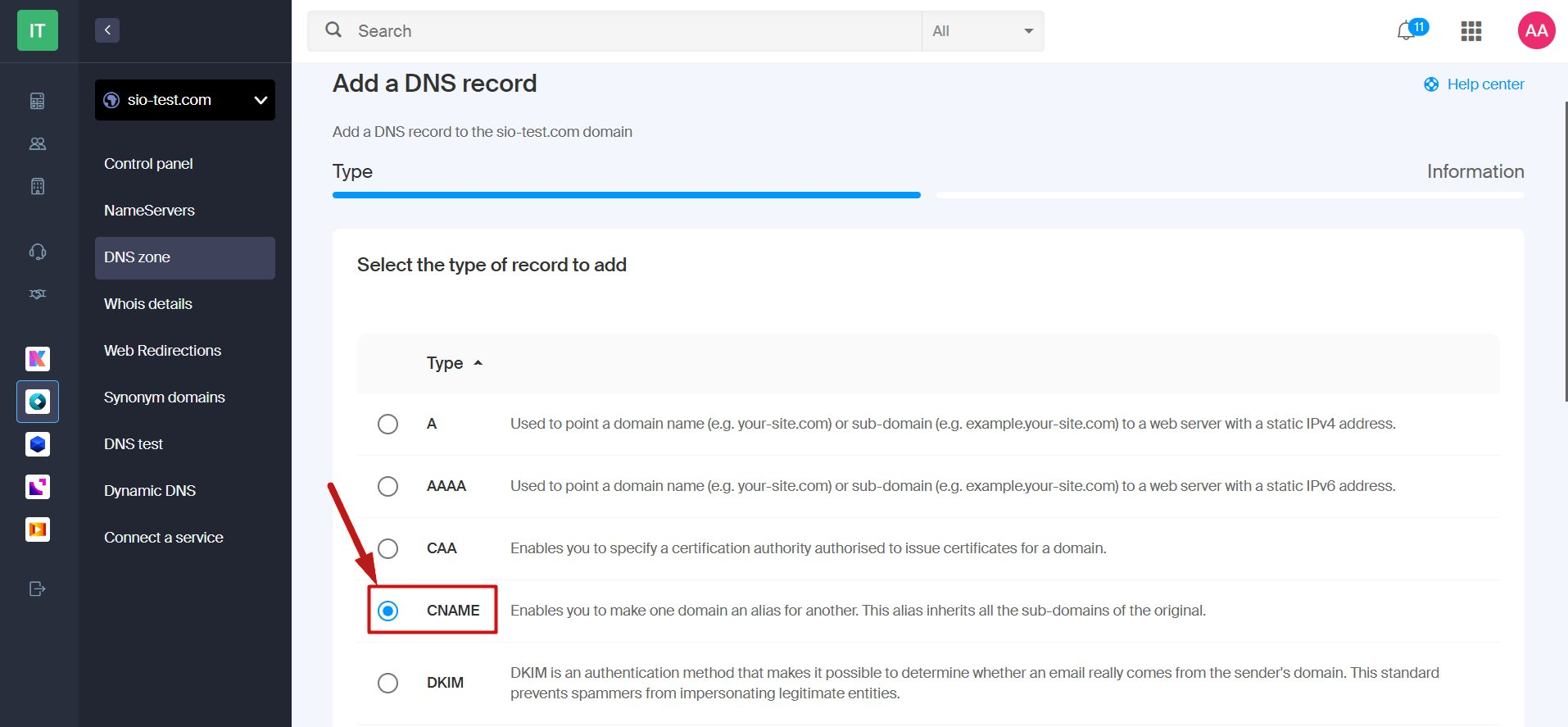 - Select the CNAME type.