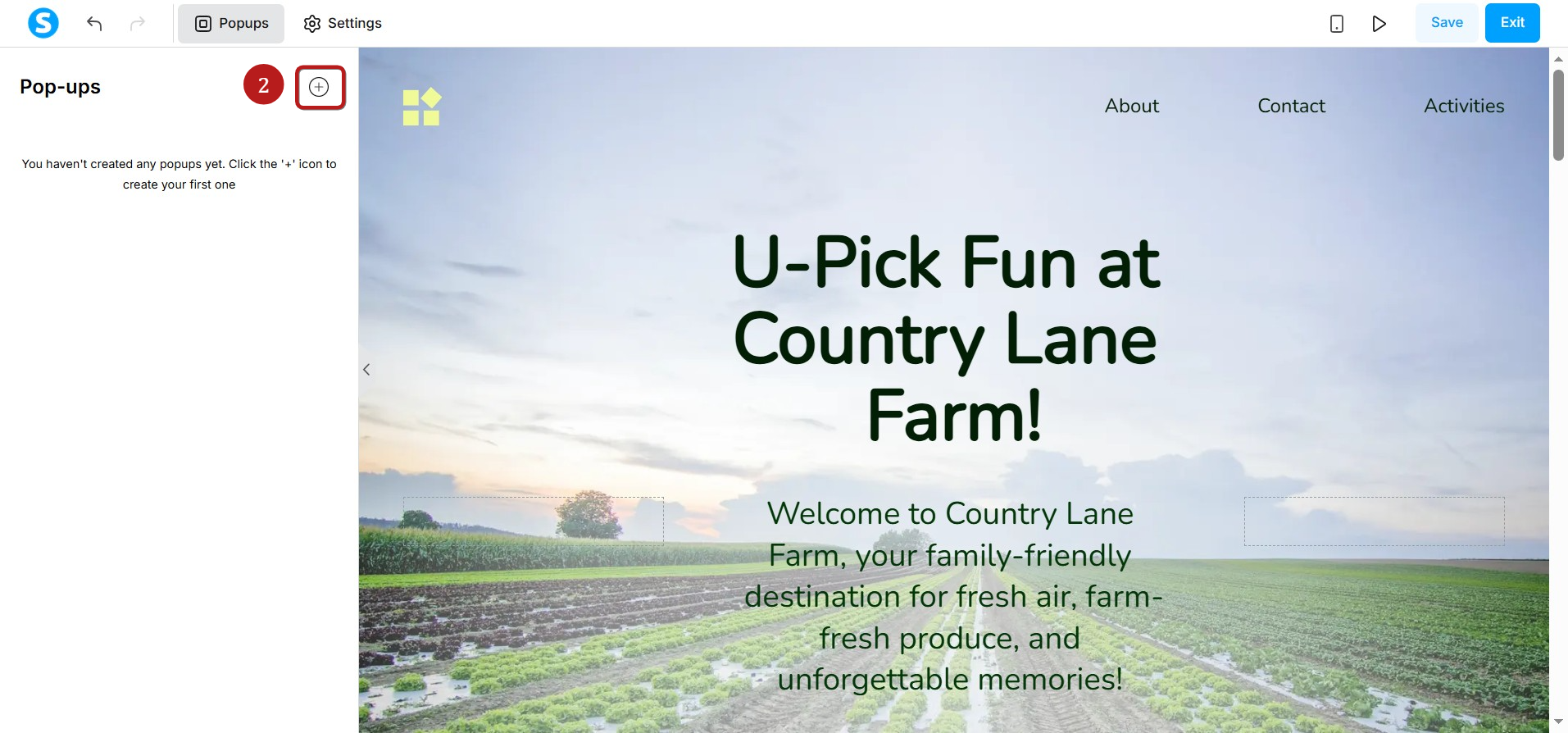 Next, click the + (2) icon to create a new popup.