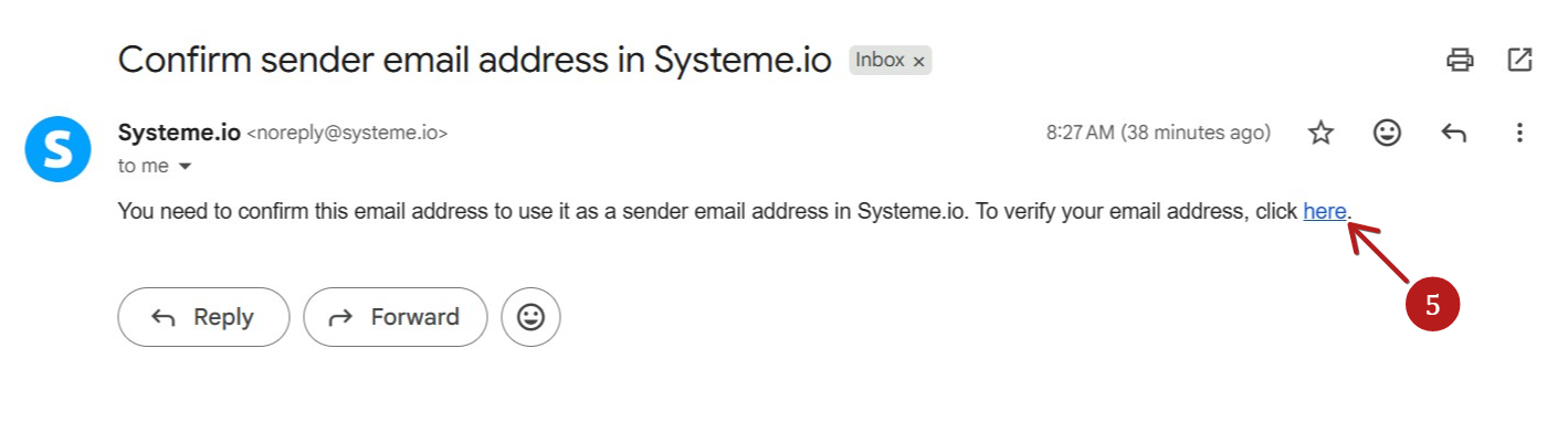 Check the inbox of the email address you just added. You will receive an email containing a confirmation link (5).