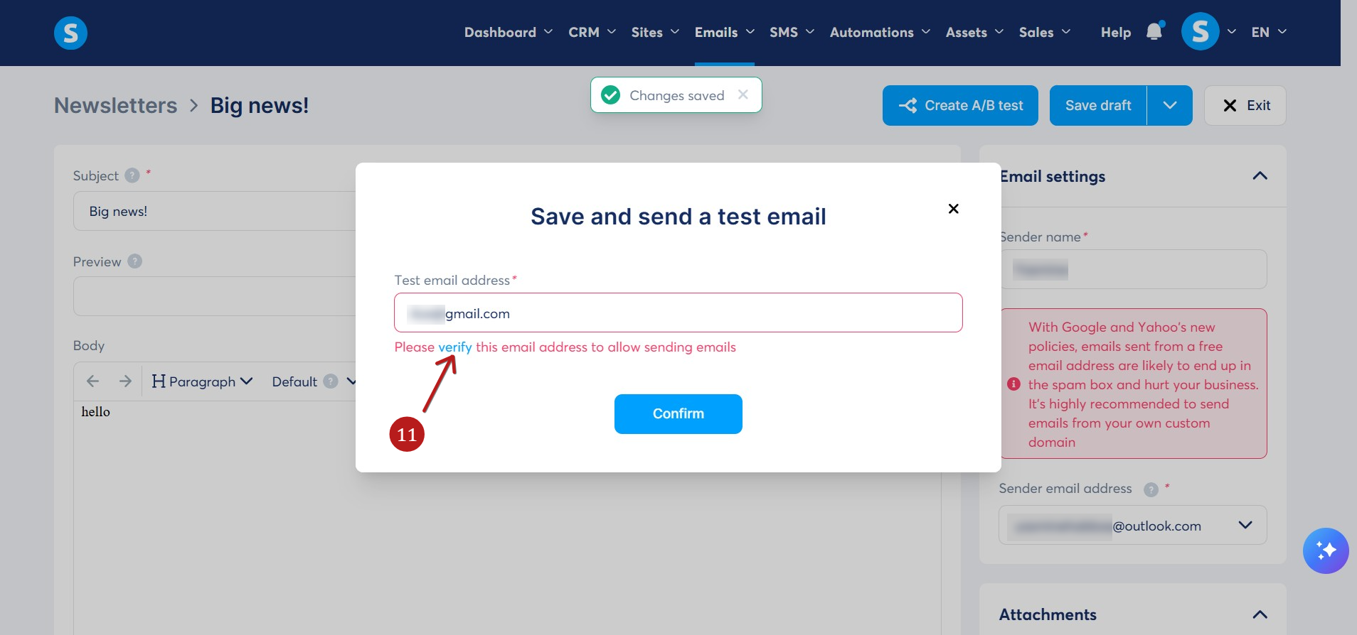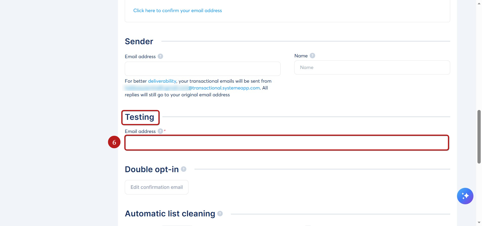 - We recommend using a different email address for testing than the one you use to send emails. This helps avoid deliverability issues.