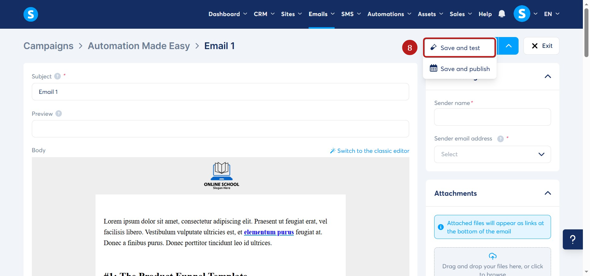 Open the specific email in your campaign that you want to test. To find out how to create a campaign, click here.