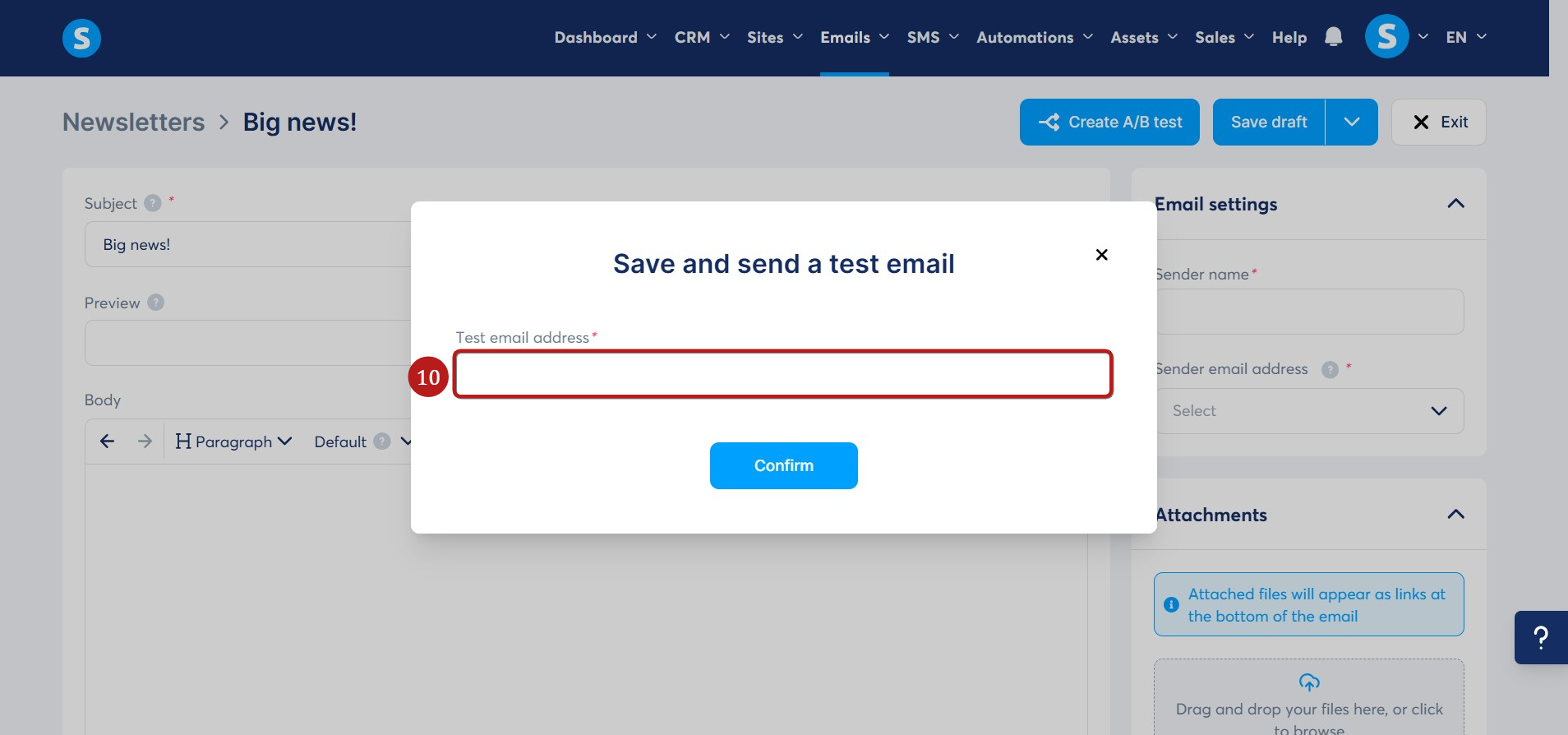 You can also change the test email address directly from the editor of your newsletter or your campaign email.