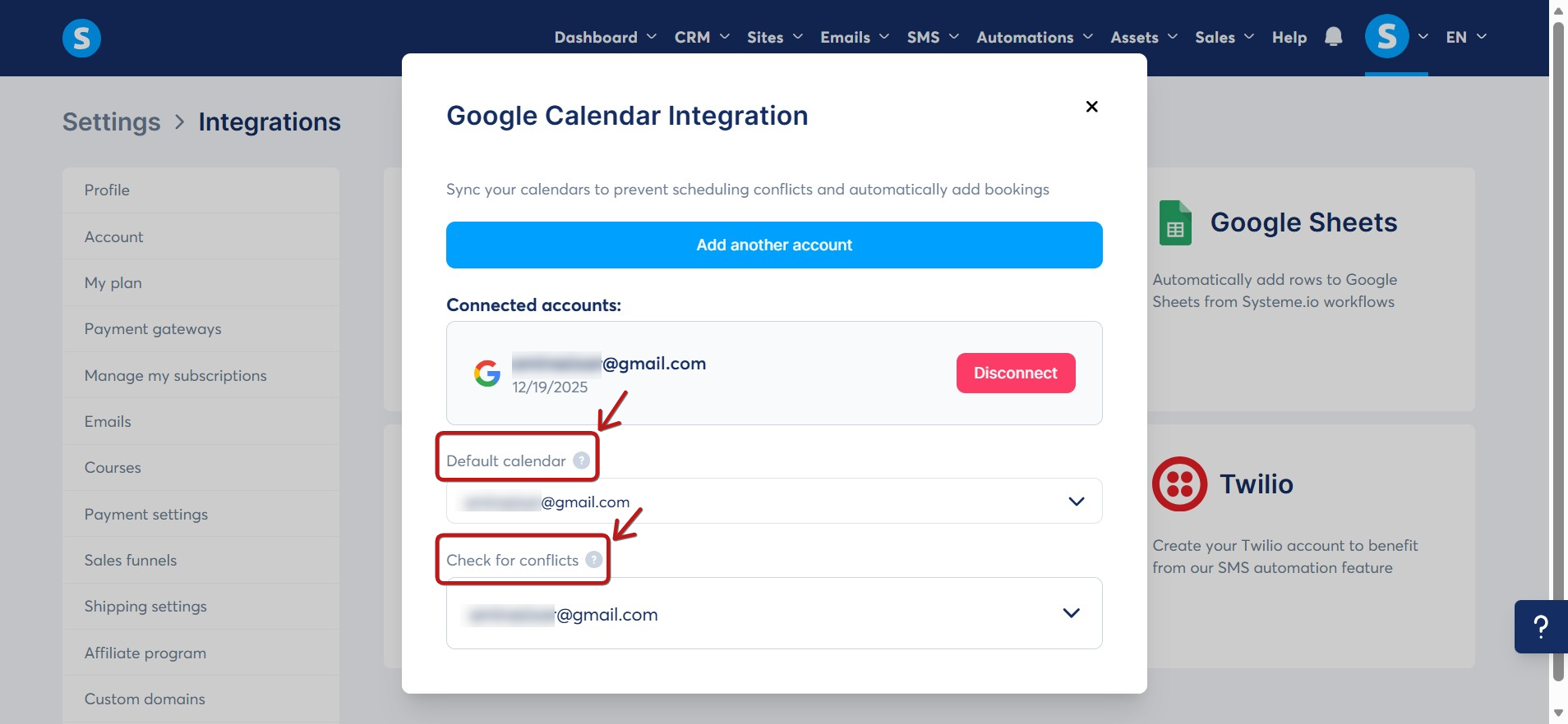 - You can integrate multiple Google Calendar accounts into your systeme.io account.
