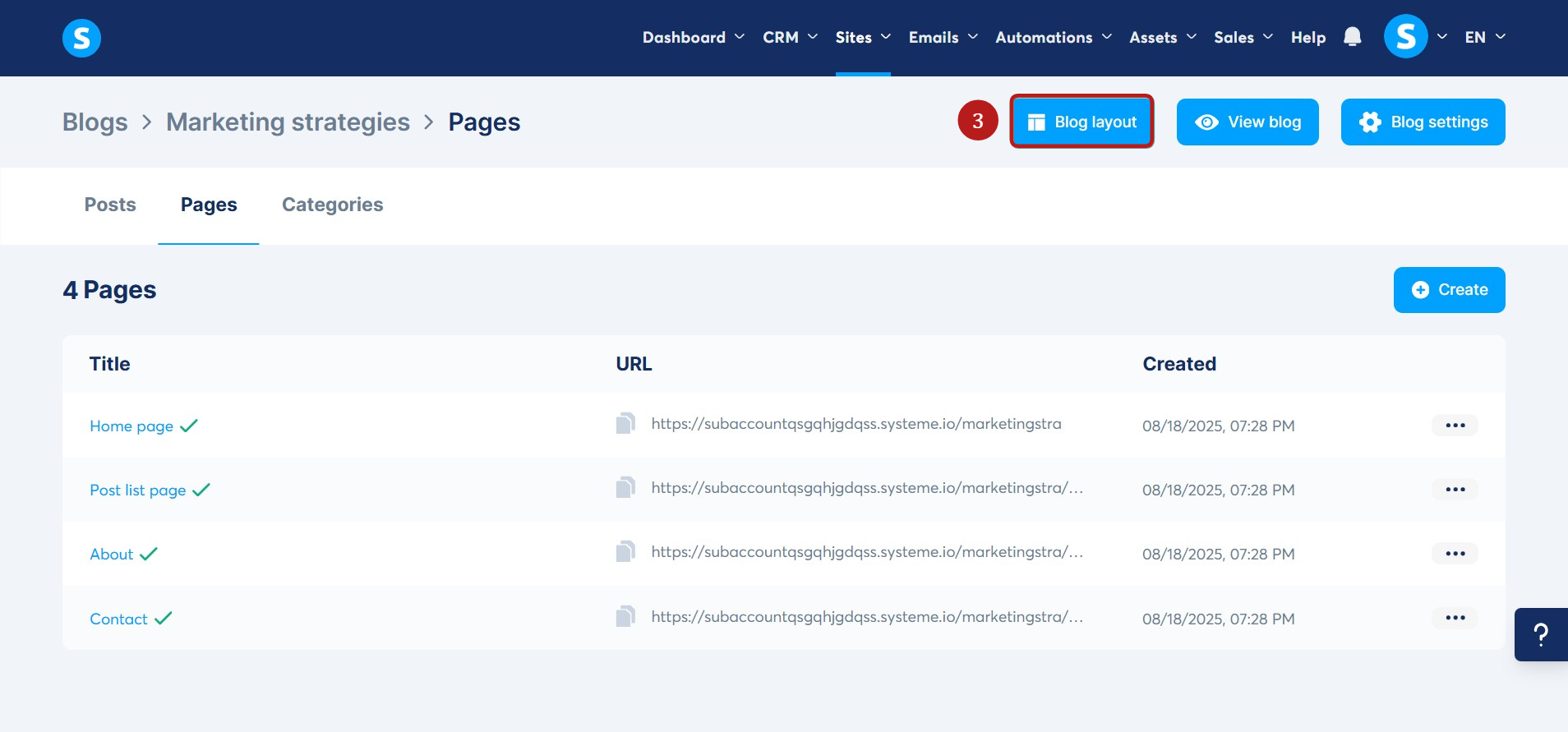 Once you're on your blog's menu, click on the Blog Layout button (3).