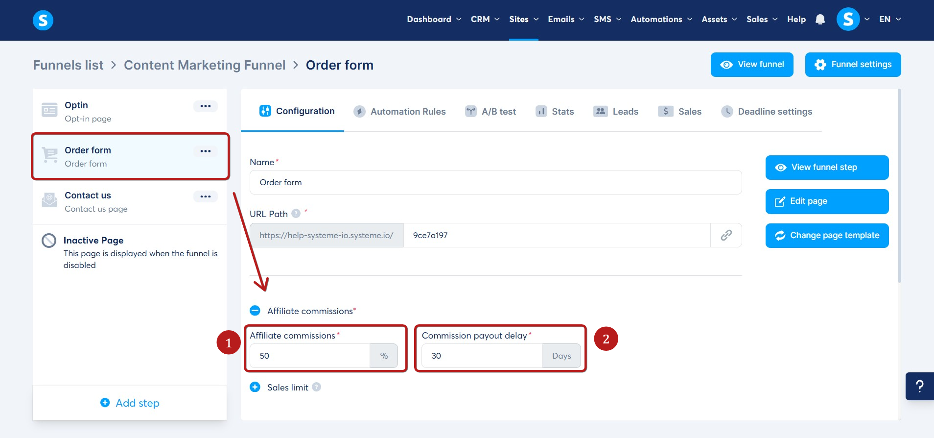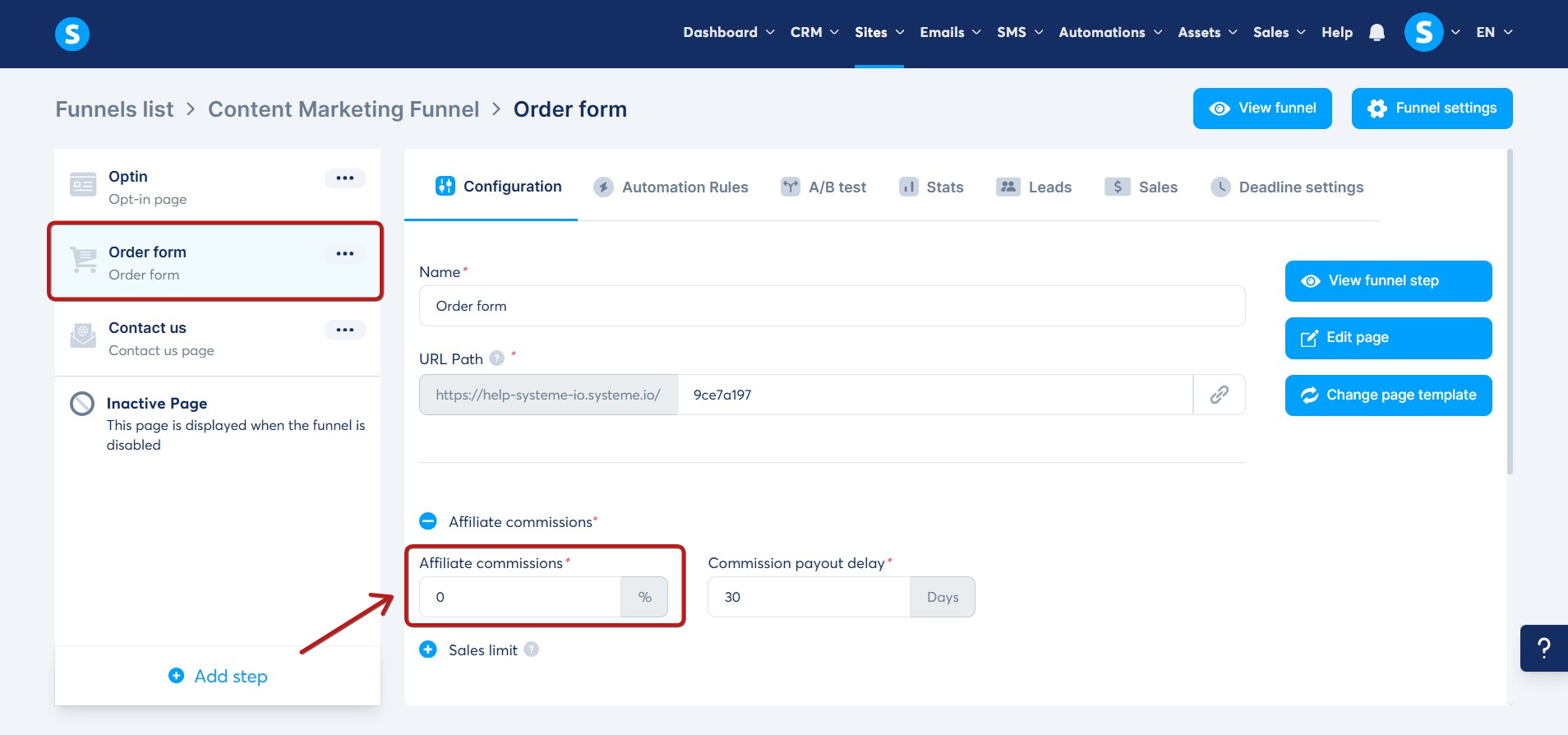 To do this, you need to go to your sales funnel, then the Order form Configuration.